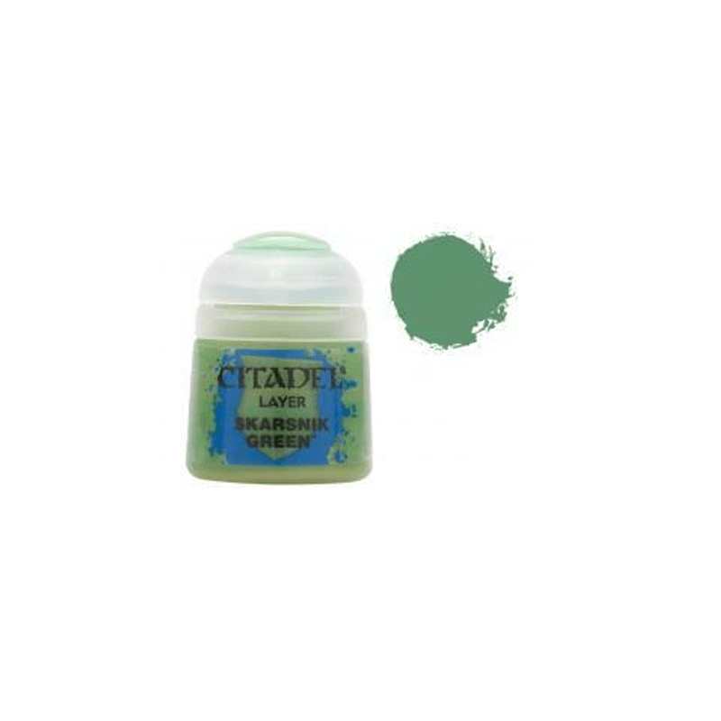 Citadel Layer: Skarsnik Green is a premium acrylic paint designed for precision layering in miniature painting. Its rich, vibrant green pigment offers excellent coverage and smooth application, ideal for achieving detailed highlights and depth on models. Formulated for consistency and durability, this paint enhances your workflow with reliable adhesion and quick drying times, making it a trusted choice for expert painters seeking professional results.