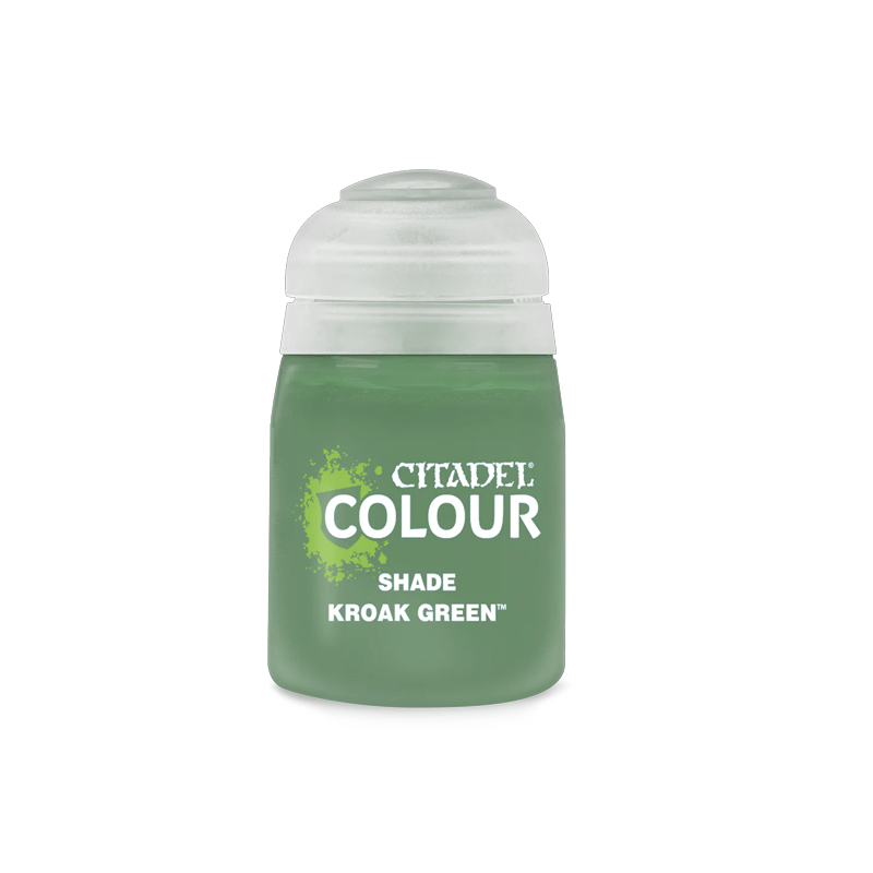 Citadel Shade: Kroak Green (18ml) is a specialized wash designed to enhance miniature details with a rich, deep green tone. Ideal for adding depth and shadow to scales, armor, and foliage, this shade brings out intricate textures while maintaining color vibrancy. Its smooth consistency ensures easy application and excellent coverage, making it a must-have for advanced painters seeking precise shading effects in their models.