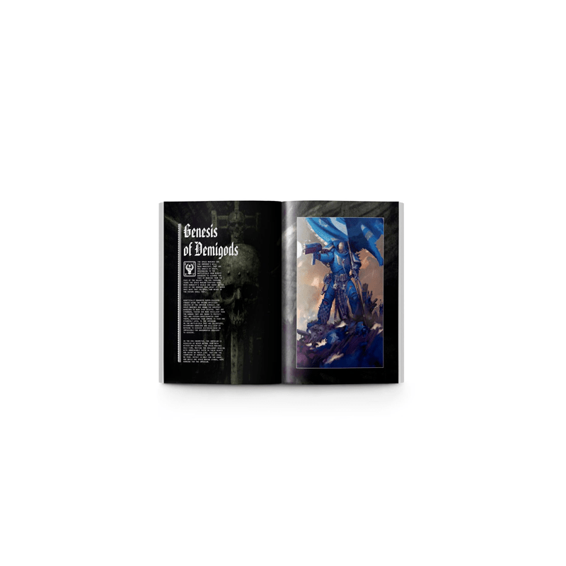 – Extensive background information regarding the Imperium's Space Marines, ranging from their genetic enhancements to the deeds of famous Chapters