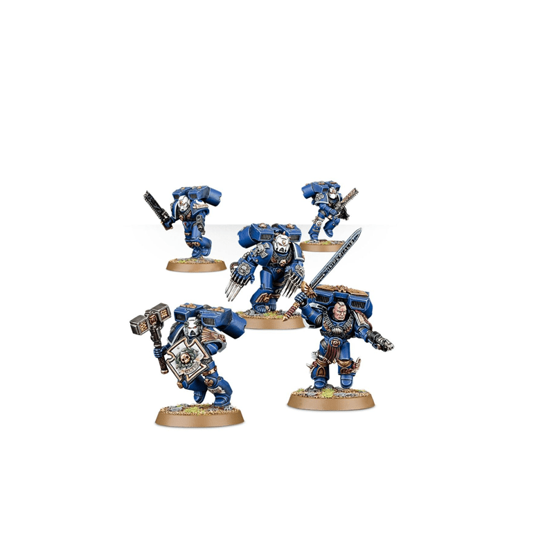 Every member of the squad can be armed with either chainsword and bolt pistol (each individual weapon bears a unique design); there are 4 sets of lightning claws; 4 pairs of thunder hammer and storm shield. The Sergeant has choice of relic blade, power sword, power fist or power axe; and there is also a grav pistol; a plasma pistol; a melta bomb; and a selection of frag and krak grenades.