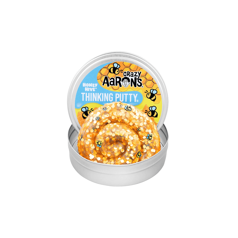 Youll bee mesmerized by the energetic amber and glistening gold hues of honey hive thinking putty. The honeycomb sparkles and buzzing bees will make you want to be the beekeeper of this putty.