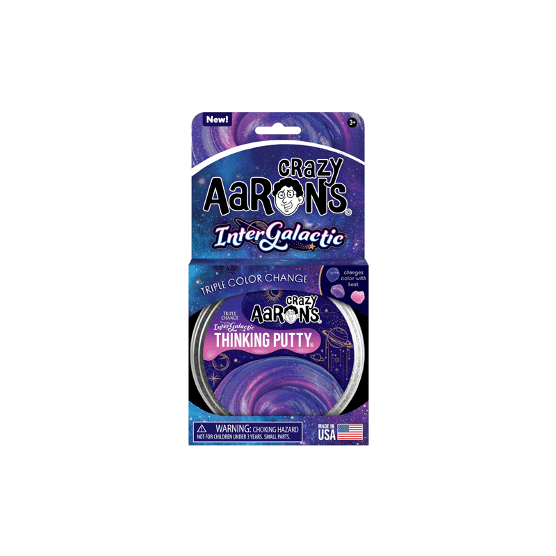 Leave Earth's atmosphere and blast off to a new galaxy use the heat of your hands to transform your thinking putty from deep space blue to ultraviolet purple and then to cosmic pink. Stretch and pull your way into Intergalactic space and create infinite galaxies. Vibrant colours change as your play-flecks shine and shimmer like the stars.