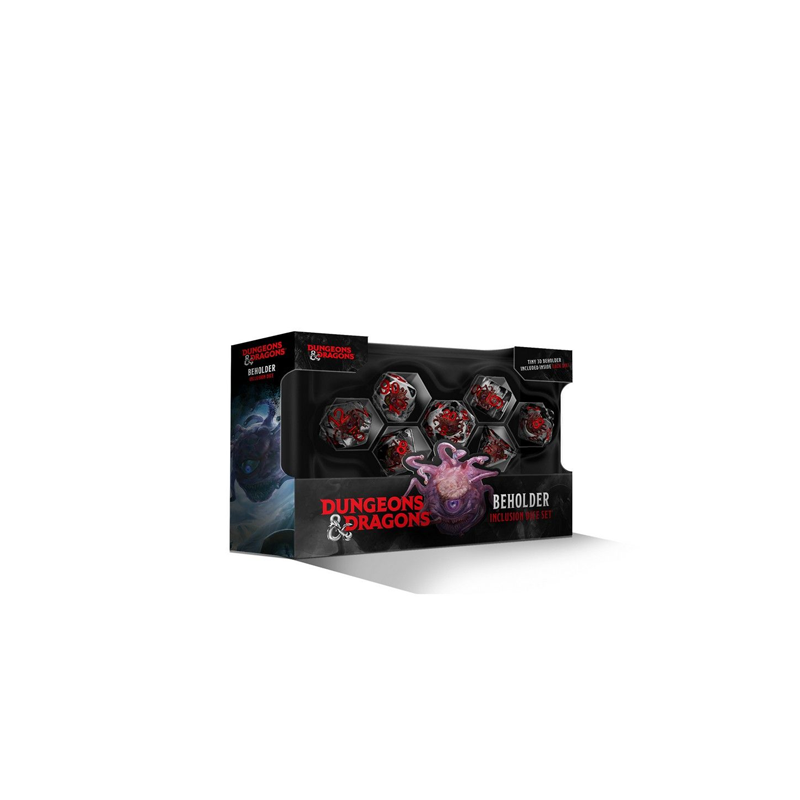 Bring the power of the beholder with you on your next adventure and roll with confidence. This finely crafted seven-piece ‘Inclusion’ dice set features a tiny 3D beholder inside each die. Will the gaze of the beholder lead your party to epic success…or epic failure? The roll of the dice will decide.