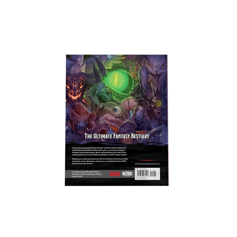 This revised and expanded Monster Manual® contains a horde of creatures for fifth edition Dungeons & Dragons®. Encounter a monstrous menagerie of familiar favoirites like dragons, giants, and mind flayers, plus a host of new monsters like the arch-hag, the blob of annihilation, and the vampire nightbringer.