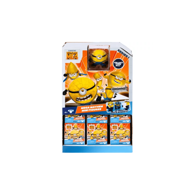 Minions are back and better than ever! Now kids can bring the fun of Despicable Me 4 home as they search for and collect Mini Minions Mystery Figures! These highly detailed 2"/ 5.8cm collectible toy figures come blind boxed.