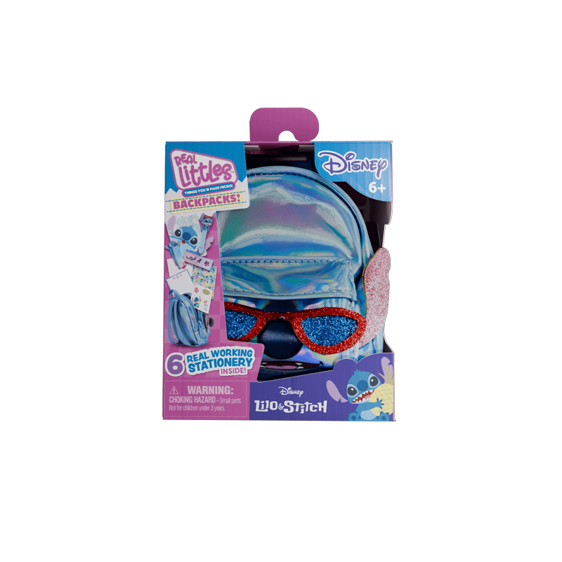 Disney Lilo & Stitch Real Littles Backpack - cute & tiny Lilo & Stitch themed backpack with micro stationery that really works! Kids will love finding 6 of the cutest Lilo & Stitch themed stationery surprises inside each backpack! Each micro backpack has a carabiner clip to hang onto a bag or jeans!