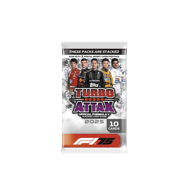 The Formula 1 Turbo Attax 2025 Booster Pack celebrates 75 Years of Formula 1® with an all-new collection packed with speed, history, and exclusive cards. This anniversary release brings the excitement of the 2025 season to life, featuring today’s brightest stars and the legendary icons who shaped the sport.
