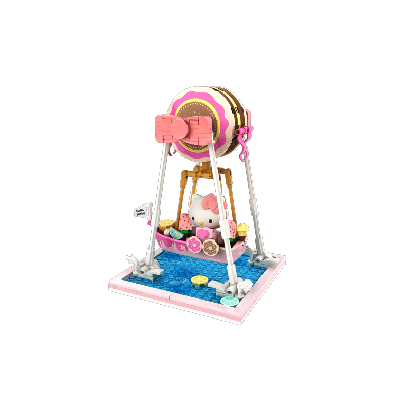 Take a break with Hello Kitty and Friends! This building toy set allows you to build your own Summer Wunderland water theme park, featuring unique attractions like an adorable donut ship, a scenic ferris wheel, a whimsical carousel, thrilling water slides, and a cozy poolside cafe.