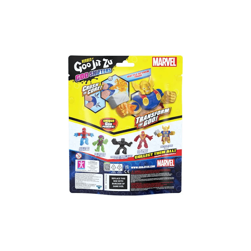 Experience the ultimate transformation with Heroes of Marvel themed Goo Jit Zu Goo Shifter Heroes! Crush the Core to unleash a mesmerising transformation. Witness the magic as the Goo inside their bodies changes colour, bringing a whole new level of excitement to your play.