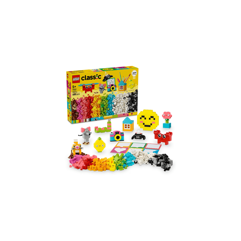 The LEGO Classic Creative Happy Box (680 pcs) offers a rich variety of colorful bricks and special elements to spark creativity and skill development. Featuring an inspirational guide with 10 quick-build models, it encourages young builders to create toys that bring joy and function—such as hanging spiders, bees, and birds, or practical crabs, monkeys, and houses that can hold small items. With the ability to rebuild and customize into countless designs, this set supports imaginative play while producing decorative and useful creations for any room.