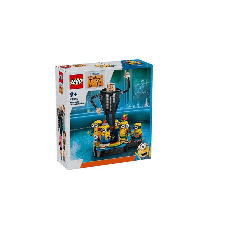 Fulfill a child’s passion for Minion toys with LEGO® Despicable Me 4 Brick-Built Gru and Minions (75582). This creative building toy for kids aged 9+ features a buildable Gru figure surrounded by dancing Minion characters, making it the perfect play-and-display gift for kids and fans of the Despicable Me movies. The large Gru figure has jointed arms, hands and fingers that kids can move into favourite poses. There are 5 buildable Minion characters: Jerry with maracas and fruit hat, secret agent Dave with a head propeller and walkie-talkie, Beedoo Minion with a megaphone, the ukulele-playing Mel and Kevin with his fart gun. The Minions are positioned on a rotating platform, and when kids turn the seated Minion, the other Minions dance around their smiling boss! Each Minion can move their hands and hold accessories. Their heads can move and the eyes can be changed to create different expressions. Kids can take 4 of the Minions off the stand to explore additional play possibilities.