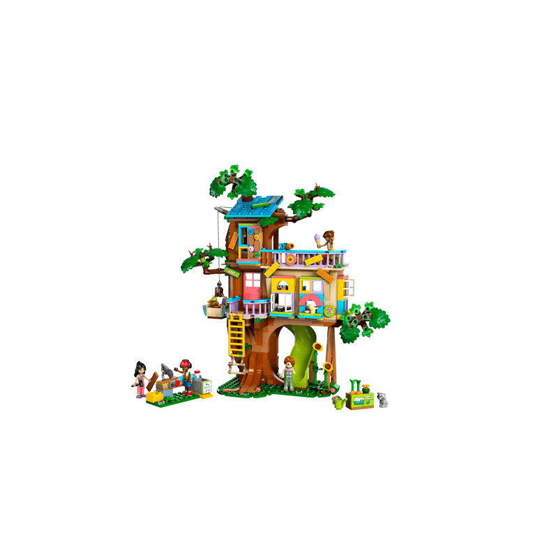 See imaginations grow with this LEGO® Friends Friendship Tree House Hangout (42652) building kit. This detailed kids’ set lets girls and boys aged 8 and over create their own friendship adventures. It comes with 4 LEGO Friends minidolls, a dog figure and a raccoon figure, plus a buildable workbench with tools.