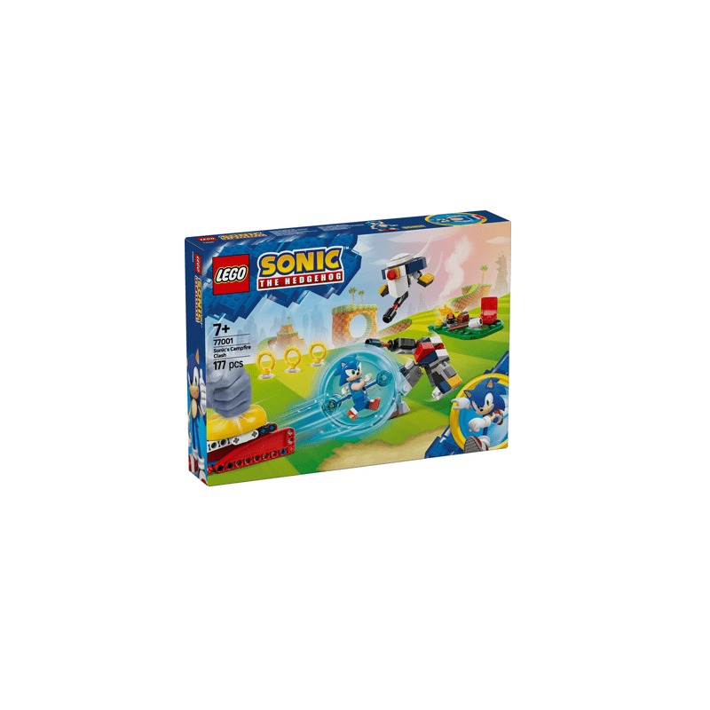 Adventure and fun await video game fans aged 7 and over in this collectible Sonic’s Campfire Clash (77001) building playset. This LEGO® Sonic the Hedgehog™ toy features a campfire area build, speed sphere launcher and speed sphere, plus accessories including a Chaos Emerald and 3 Gold Rings. This video game set also has 4 Sonic character toys: a Sonic minifigure, ‘flying’ G.U.N. Beetle robot drone, posable G.U.N. Hunter robot figure and a Tocky.