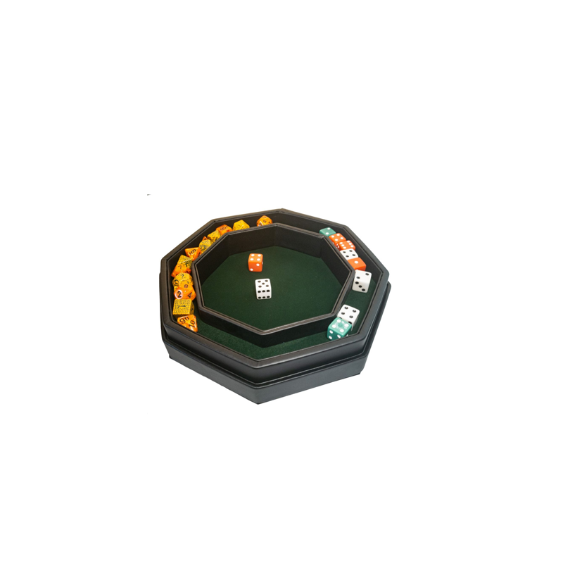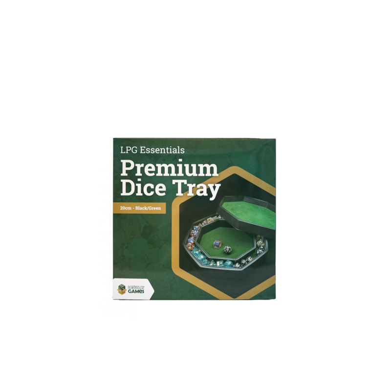 The LPG Essentials Premium Dice Tray is expertly designed for serious tabletop enthusiasts. Measuring 20 cm, its padded walls and included dice mat protect both your dice and gaming surface from damage. The tray securely transports up to five RPG dice sets, while its lid conveniently doubles as a spacious, padded rolling mat. Ideal for storing, displaying, and rolling your dice with optimal protection and style.