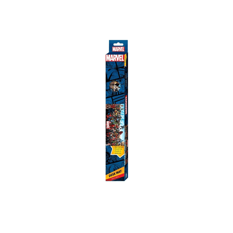 Your officially licensed desk mat comes in a full colour gift box featuring the Avengers, Guardians of the Galaxy, Moonknight, Kraven and many other Marvel heroes! Dimensions 90cm x 40cm.