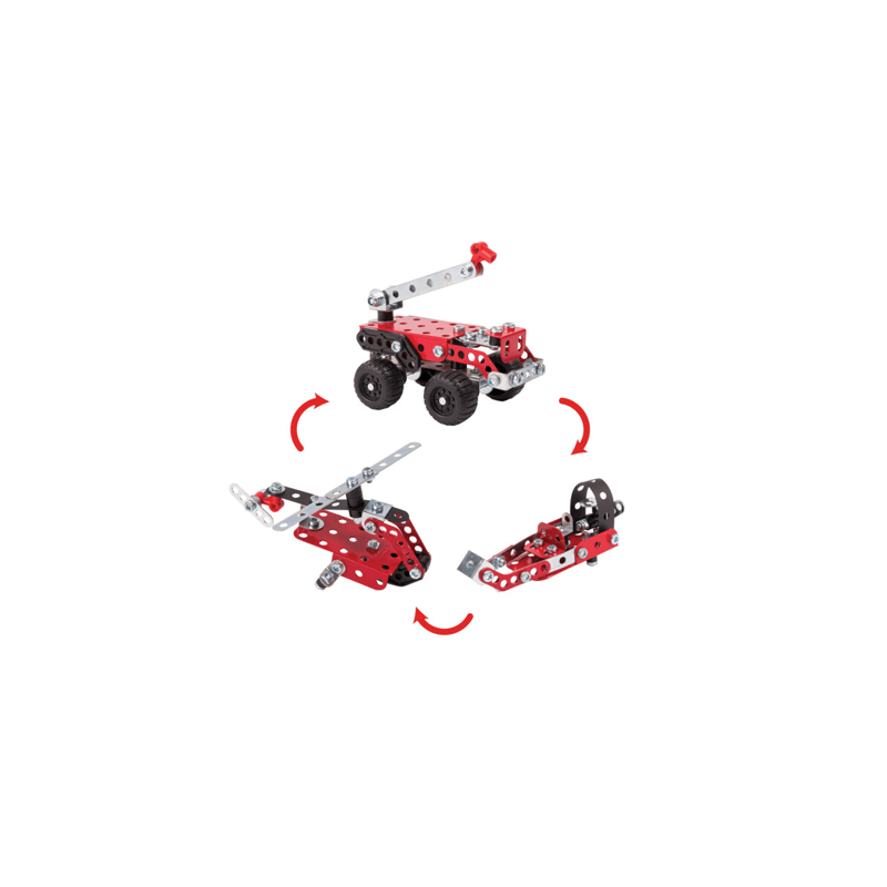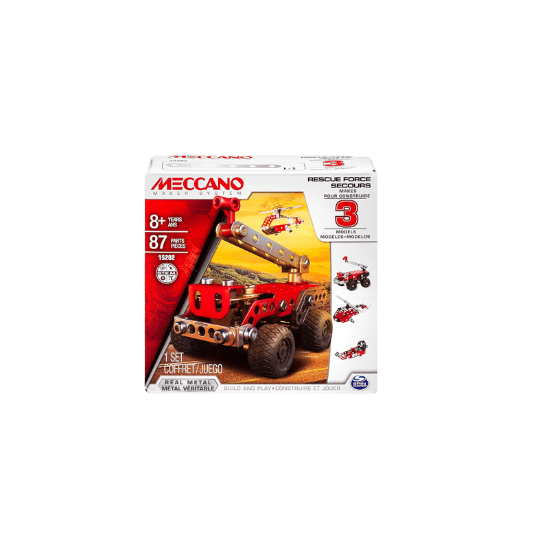 Use your imagination to save the day as you explore the world of real engineering with the Meccano Rescue Squad Set. Construct a model Fire Truck with a full metal exterior and real working extendable ladder – off to the rescue! After a successful mission, young builders can display their Fire Truck or take it apart and build another model in this set, such as the Rescue Airboat or Rescue Heli, complete with spinning rotor! Then, it’s up to you and your imagination to create a first-responder vehicle of your own design! Explore the mechanical wonders of the world as you avert disaster with your Rescue Squad Set. The future is yours to build with Meccano!