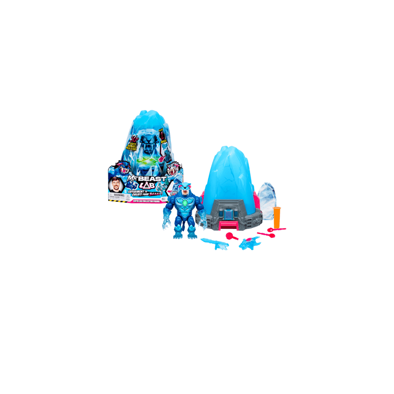 Introducing the NEW MrBeast Lab Cryo Lab. Which Big Cat will you release when you initiate the activation sequence and trigger a thermal meltdown? Perform the experiment and mix water into the Thermite Powder and watch it react, then push the Finger Print Scanner Button and witness an amazing sight within the Cryo Lab. Once the Cryochamber thaws, your MrBeast Panther Collector Figure will appear. Release your Beast and unfreeze its weapons, then discover its primal power.