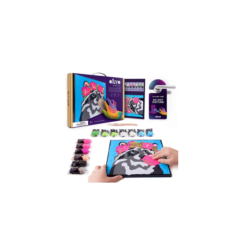 Introducing the Raccoon Colouring With Clay Set, where you can effortlessly create a charming three-dimensional masterpiece featuring a delightful raccoon adorned with a wreath of flowers atop its head. Following simple instructions, fill each contour with vibrant clay colours to bring your raccoon to life in a uniquely original way.