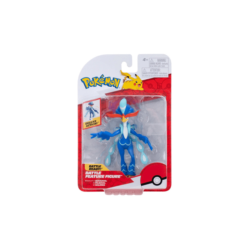The Pokémon Battle Feature Figure Quaquaval showcases this vibrant Water/Fighting-type Pokémon in a dynamic battle-ready stance. Expertly crafted to emphasize Quaquaval’s powerful wings and striking plumage, this figure captures its agility and strength. Ideal for collectors and fans, it offers an authentic representation that highlights the character’s unique blend of grace and combat prowess, making it a compelling addition to any Pokémon battle display.