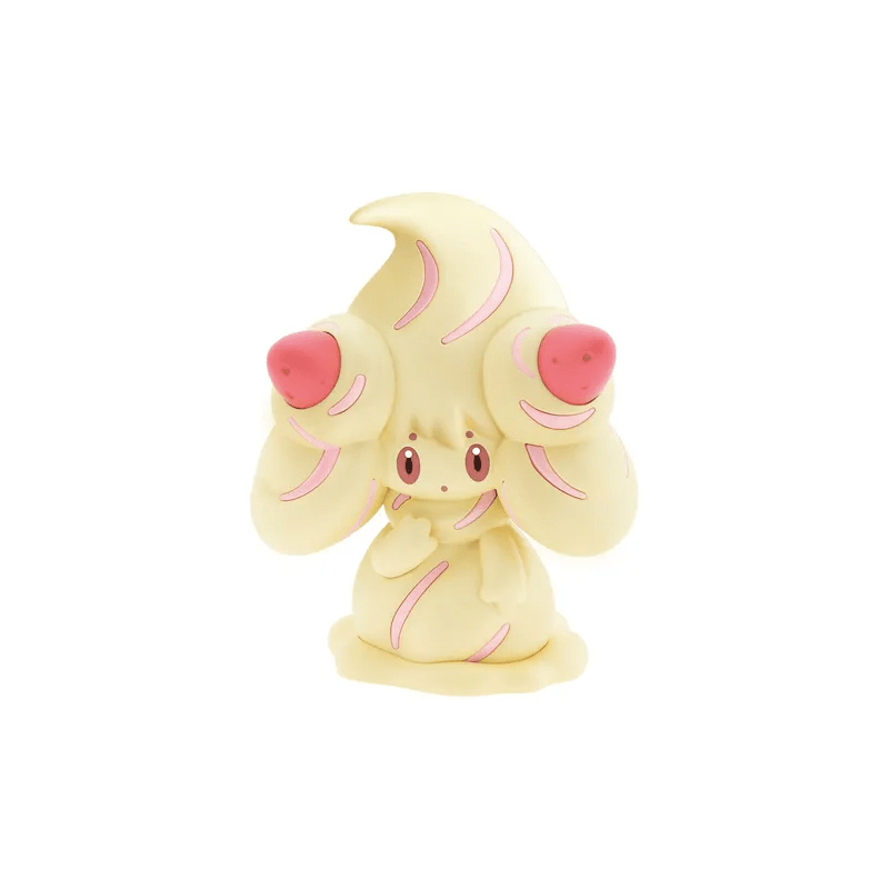 Alcremie, the Cream Pokemon. Alcremie is a unique Pokemon introduced in the series Eighth Generation, featuring a body comprised entirely of whipped cream! Alcremie comes in several colorful variants unlocked through an unusual evolution gimmick, appearing with different flavors of cream and swirls depending on several variables. Players can acquire even more variants of Alcremie by evolving its pre-evolved form, Milcery, while it holds one of seven different sweets. Of all the Pokemon with variations, Alcremie tops the list with 63 unique variants for players to collect, excluding shiny variants.