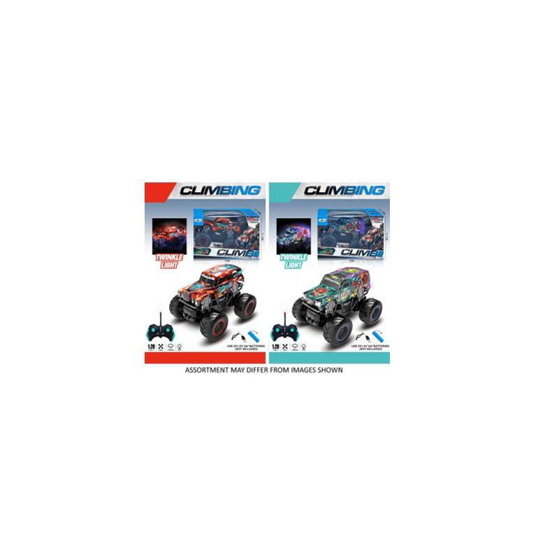 Experience precise control and rugged performance with the Radio Control 1:20 Rock Climber. Operating on a 2.4GHz frequency, this model offers reliable, interference-free handling. Equipped with functional lights, it enhances visibility and realism during climbs. Its detailed design and robust build make it ideal for enthusiasts seeking an authentic rock climbing RC experience. Available in assorted styles to suit your preference.