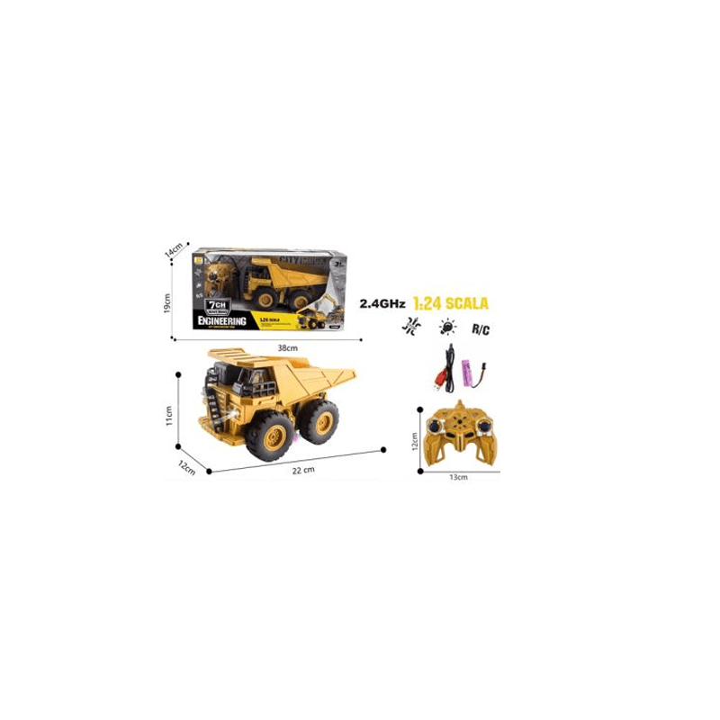 Experience precision and power with the Radio Control 1:24 Mining Dump Truck. Operating on a 2.4GHz frequency with 7 channels, this model offers enhanced control and responsiveness for complex maneuvers. Its detailed design replicates real mining trucks, making it ideal for enthusiasts seeking realistic operation and durability in a compact scale. Perfect for advanced users who demand both performance and authenticity in their RC vehicles.