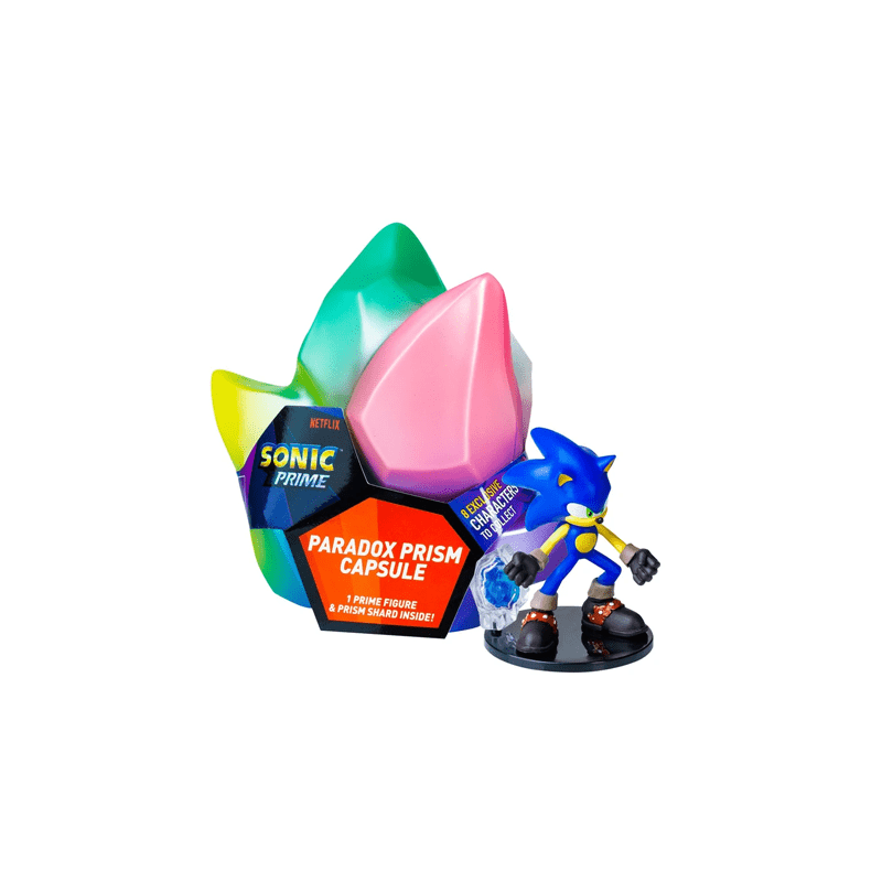 Sonic Prime Paradox Prism Collectible Figurines in Blind Box. 1 Hidden Figurine and Prism Shard. Official Sonic Toys for Boys & Girls. Mystery Collectible Figures based on the Netflix Show. Complete Your Sonic Toy Collection with 8 different 2.5-inch tall Mystery Sonic Prime Figures to Collect. Great Gifts for Kids Who are Fans of the Sonic the Hedgehog.