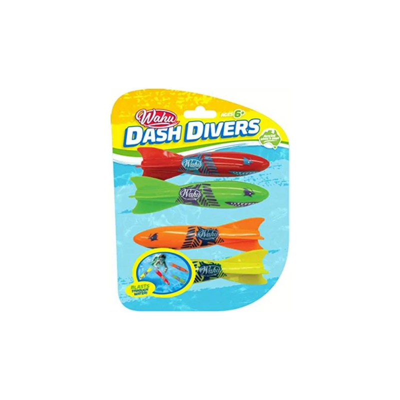Wahu Dash Divers shoot through the water with incredible speed! Challenge your friends and swim as fast as you can to catch them all! For Ages 6+