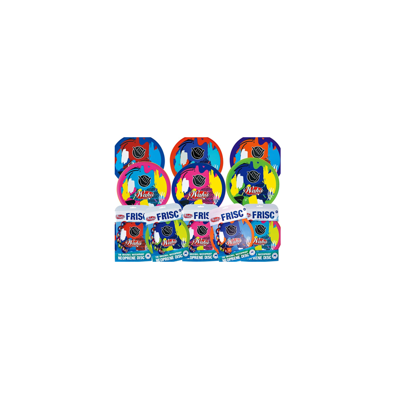 The original Frisc is a waterproof neoprene disc perfect for the beach, park, or backyard. Casually catch it between friends and family, or give the game competitive edge by playing piggie-in-the-middle or try marking goals in the lawn or sand. The bright raised graphics add grip and visibility for versatile fun!