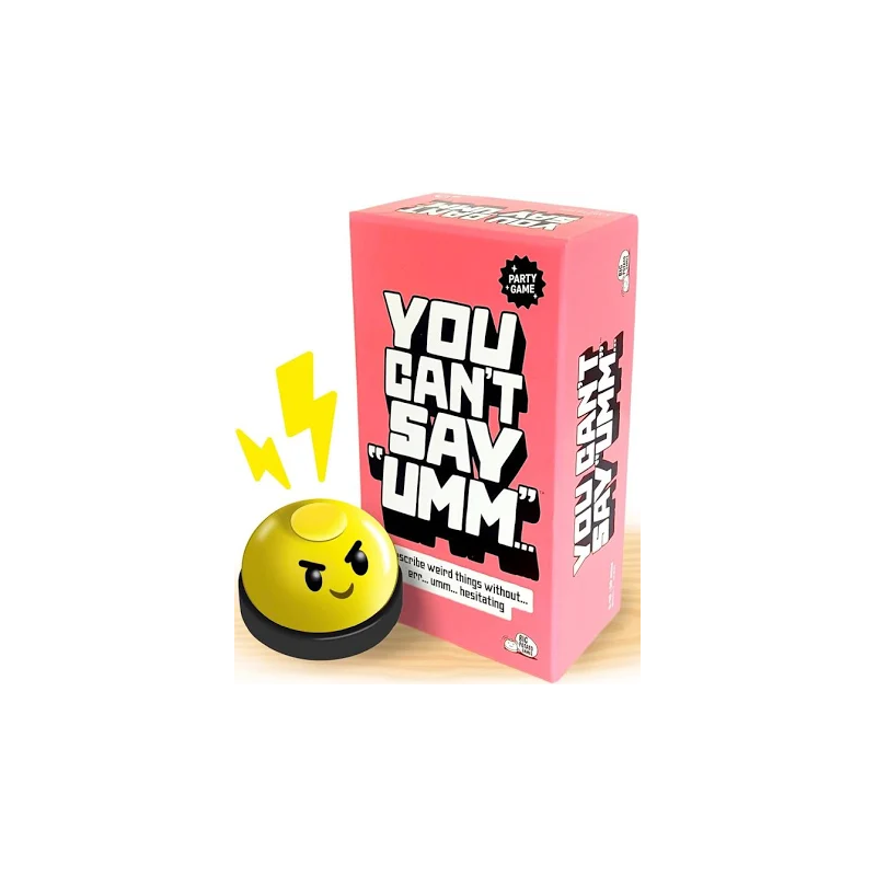 You Can't Say Umm is a fast-paced party game that challenges players to speak fluently under pressure. Players draw cards with topics and must talk about them for a set time without using filler words like "umm," "uh," or "like." Perfect for game nights with friends and family, this game sharpens communication skills while delivering hilarious moments. Ideal for ages 8 and up, it accommodates 2-6 players and makes an excellent addition to any game collection.